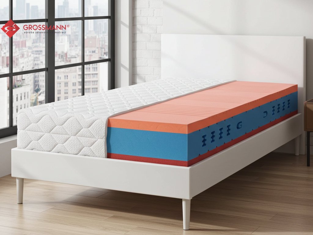Výška matrace je 24cm, maximální nosnost do 130 Kg/osoba.Sendvičová matrace GRAND FRESH to je vysoce luxusní sendvičová matrace nejvyšší kvality je kombinací studených pěn Neveon®..Pro výrobu jsou použity pouze ty nejkvalitnější materiály současnosti, které neobsahují formaldehyd.Každá strana matrace má jinou tuhost a změnu tvrdosti lze provést jednoduchým otočením matrace.